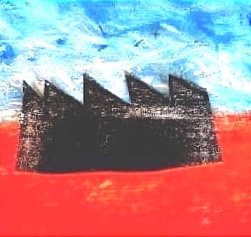 For a while I had a job at a factory well outside the city, a large rectangular building of corrugated iron set in land cleared of life. I remember the perpetually falling and self-replenishing veils of dust inside, its texture and its scent, metallic and chalky, like disappointment. From the bus stop I’d cross the concrete courtyard towards the iron roof serrated like blades of a bread-knife cutting into the insanely blue sky.