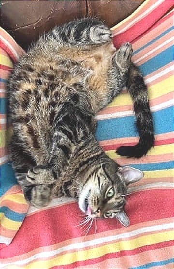 I need to get away from AF so I go down to the other end of the veranda and in through the living-room–kitchen door, which is the same as the study door I’ve just left, metal but not unkind. Put the kettle on, leaves in the pot. Dickson Cat comes too. He likes the kitchen. Together we watch the kettle. Despite rumours to the contrary I trust it will boil, eventually.